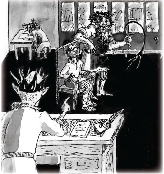 – Где я? – пробормотал Василий, отфыркиваясь и с трудом ворочая языком, и приоткрыл один глаз. Другой заплыл и не открывался. Голова безбожно болела, на лбу багровела шишка размером с грецкий орех. Тело лазутчика оказалось плотно приторочено верёвками к массивному деревянному стулу, намертво прибитому к полу.