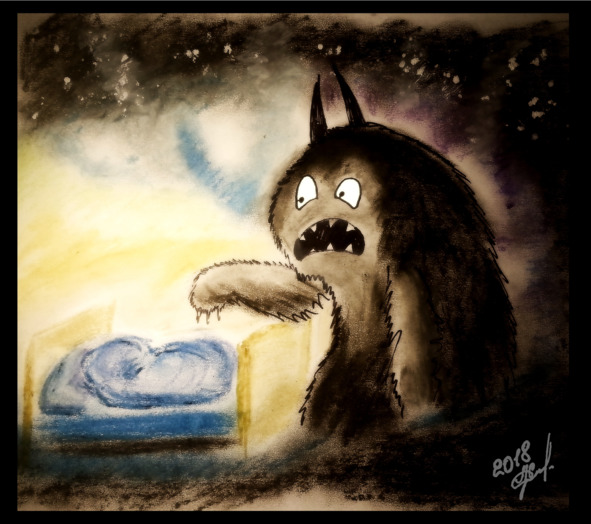 На картинке внизу страшилки была страшная когтистая лапа, высунувшаяся из-под кровати.