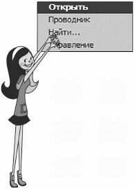 Ну что ж, попробуем запустить программку, скрывающуюся под объектом на рабочем столе. Щелкните левой кнопкой мышки два раза, и как можно быстрее. Если ничего особого не происходит (т. е. никакое окошко не открывается), значит, вы медленно щелкаете. Потренируйтесь. Ну, если совсем дело плохо и, сколько бы вы ни щелкали, программа не запускается, то нажмите правой кнопкой мышки на объект. Должно появиться контекстное меню, т. е. меню, которое расскажет, что можно сделать с программой, которую вы уже полчаса пытаетесь запустить с помощью левой кнопки мыши. Выбираем Открыть. При этом откроется окно программы. Чтобы закрыть его, нужно поставить на нем крест (в прямом смысле слова), просто нажмите на крестик в правом верхнем углу открывшегося окна.