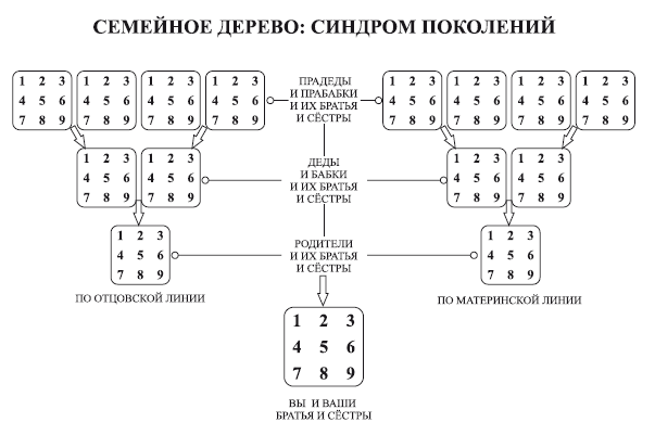 Люди (братья и сестры) с одним номером (№) расположены в одном столбце (вертикально) и обычно лучше находят общий язык друг с другом – лучше, чем те, кто расположен на одной горизонтальной линии.