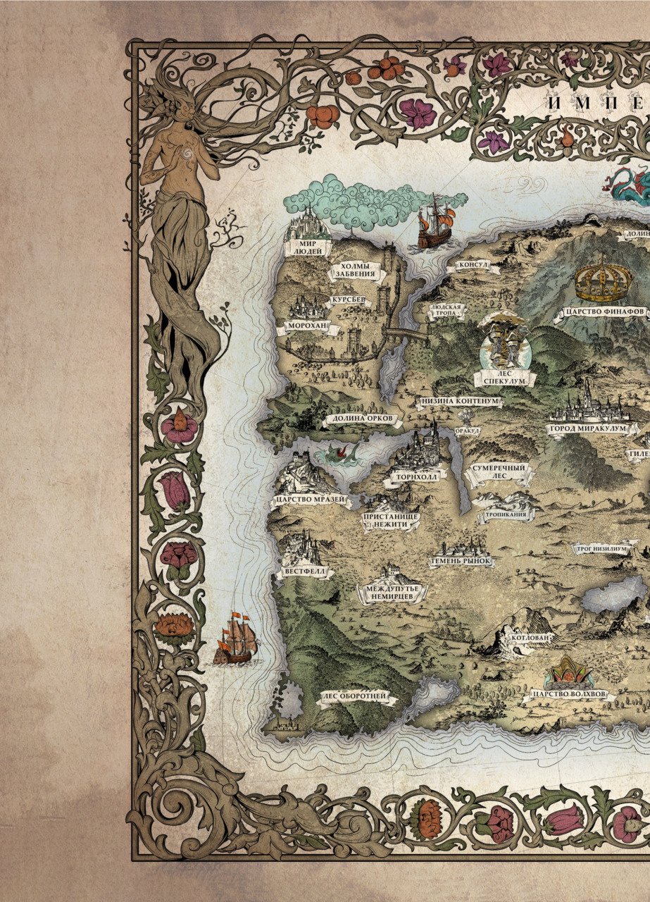 Империя состоит из разных царств – Царство Фина́фов, Царство Га́рпий, Царство Чисты́х, Царство Волхво́в, Царство Мра́зей. Великолепие столиц этих царств достигло своего расцвета. Здесь сплетается собственная многолетняя история, причудливая архитектура. Старая энергетика окутывала этот мир, создавая чувство первенства и гордости за пройденный этап, так называемой войны с Тенью, великим злом.