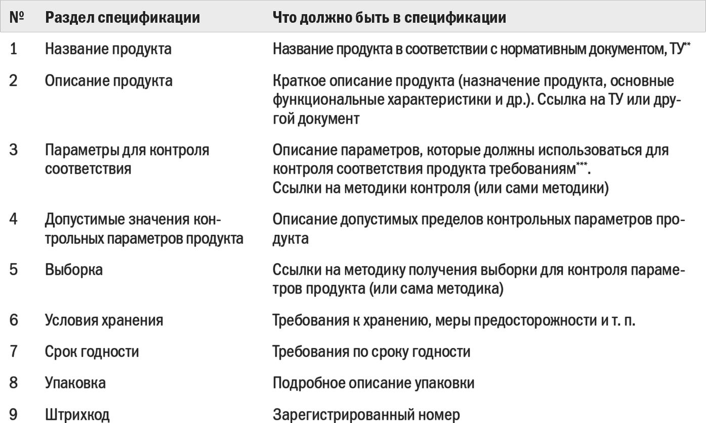 Таблица 1.2.1. Структура спецификации для готового продукта