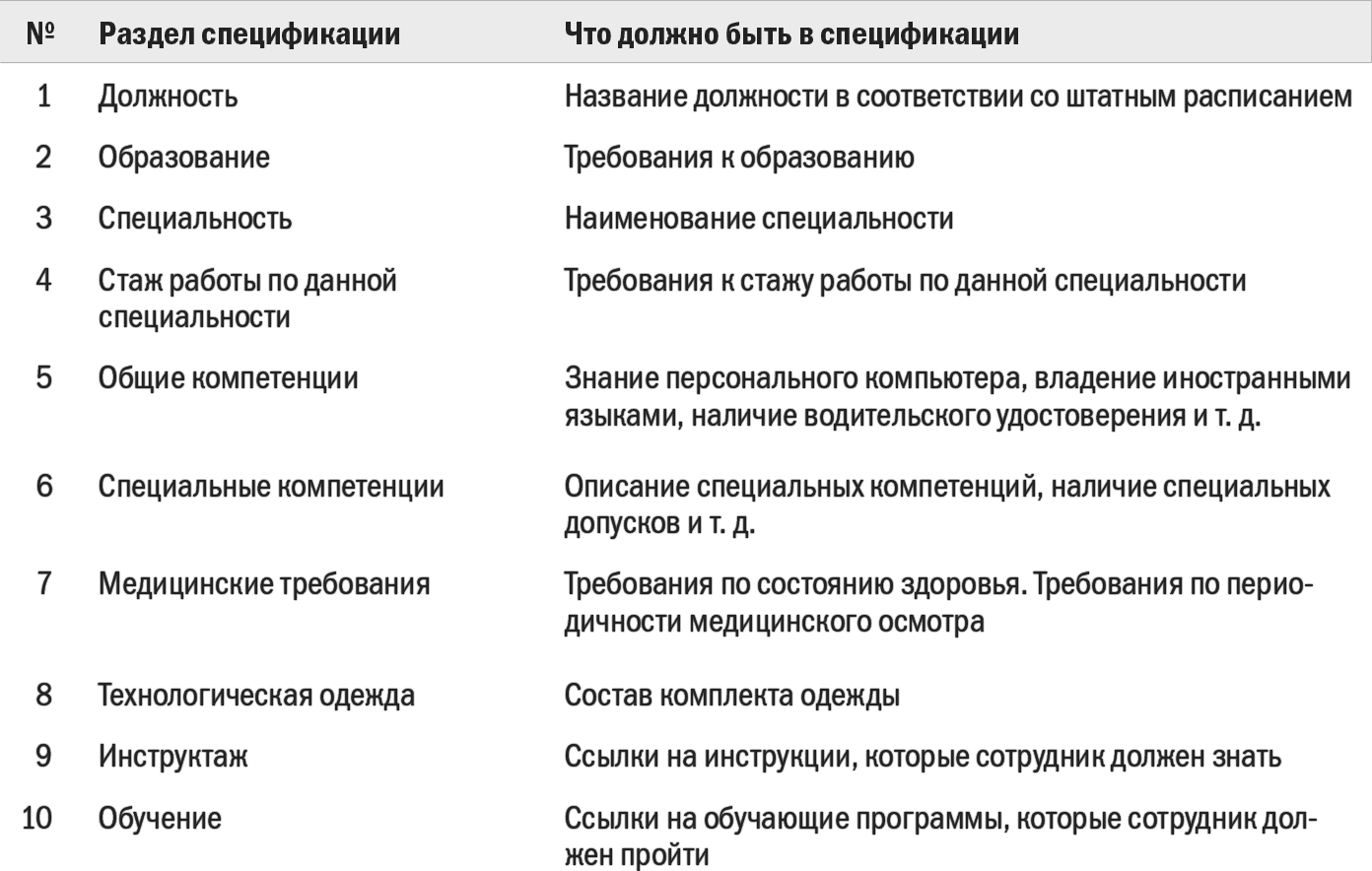 Таблица 1.2.3. Структура спецификации на человеческие ресурсы (персонал)