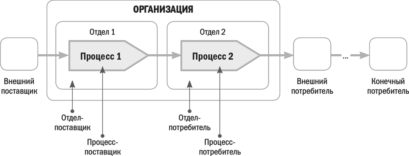 Внутренний поставщик – субъект, находящийся внутри организации и предоставляющий ресурсы, необходимые для выполнения процесса.