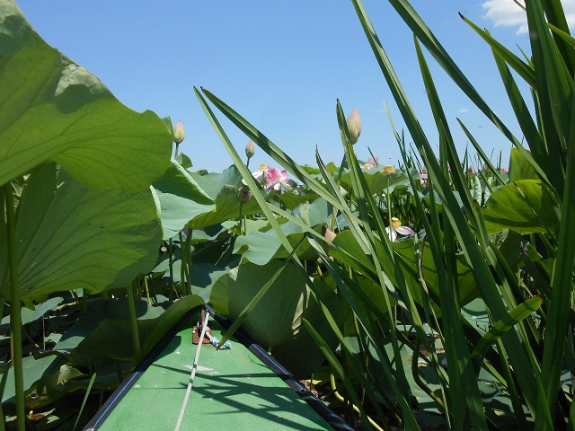 Статичный пейзаж представляет из себя мало интересного для съёмки видео. Все эти красоты займут от силы пару секунд в общем хронометраже. Веточка качнулась, волна плеснула, вот и всё из пятиминутной съёмки. Я кивнула Илье головой, и он тихим ходом вывел нас из царства лотосов. Мы вернулись в тростниковый коридор, и я опять насладилась ощущением скорости и свободы.