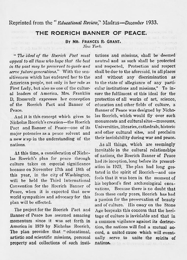 Оттиск статьи Ф.Р.Грант «Знамя Мира Рериха»