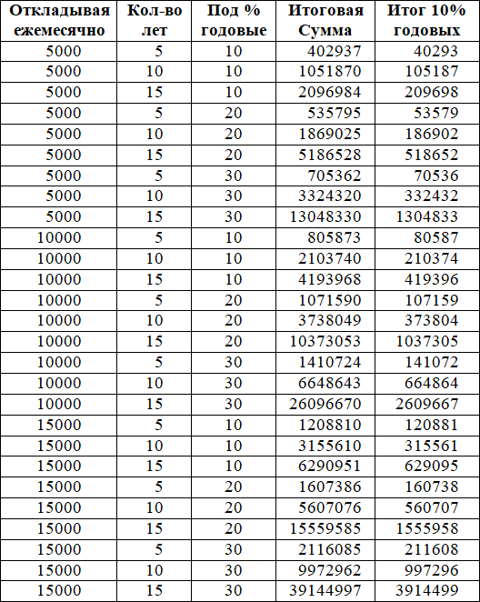 Многие люди с нетерпением ожидают выхода на пенсию, которою обеспечивает государство, и считают это финансовой свободой, но это просто абсурд, скорее да же обман самих себя. На эти деньги не возможно существовать, а не то, что жить. Любое государство стремиться увеличить период выхода на пенсию, а некоторые люди не доживают вообще до нее. Лучше не ждать от государства пенсию, а сделать ее самому и например к 30 или 40 годам. Исходя из этого, давайте лучше сделаем выводы и посмотрим на примерные расчеты, из которых будут видны свои возможности и к чему нужно как минимум стремиться: