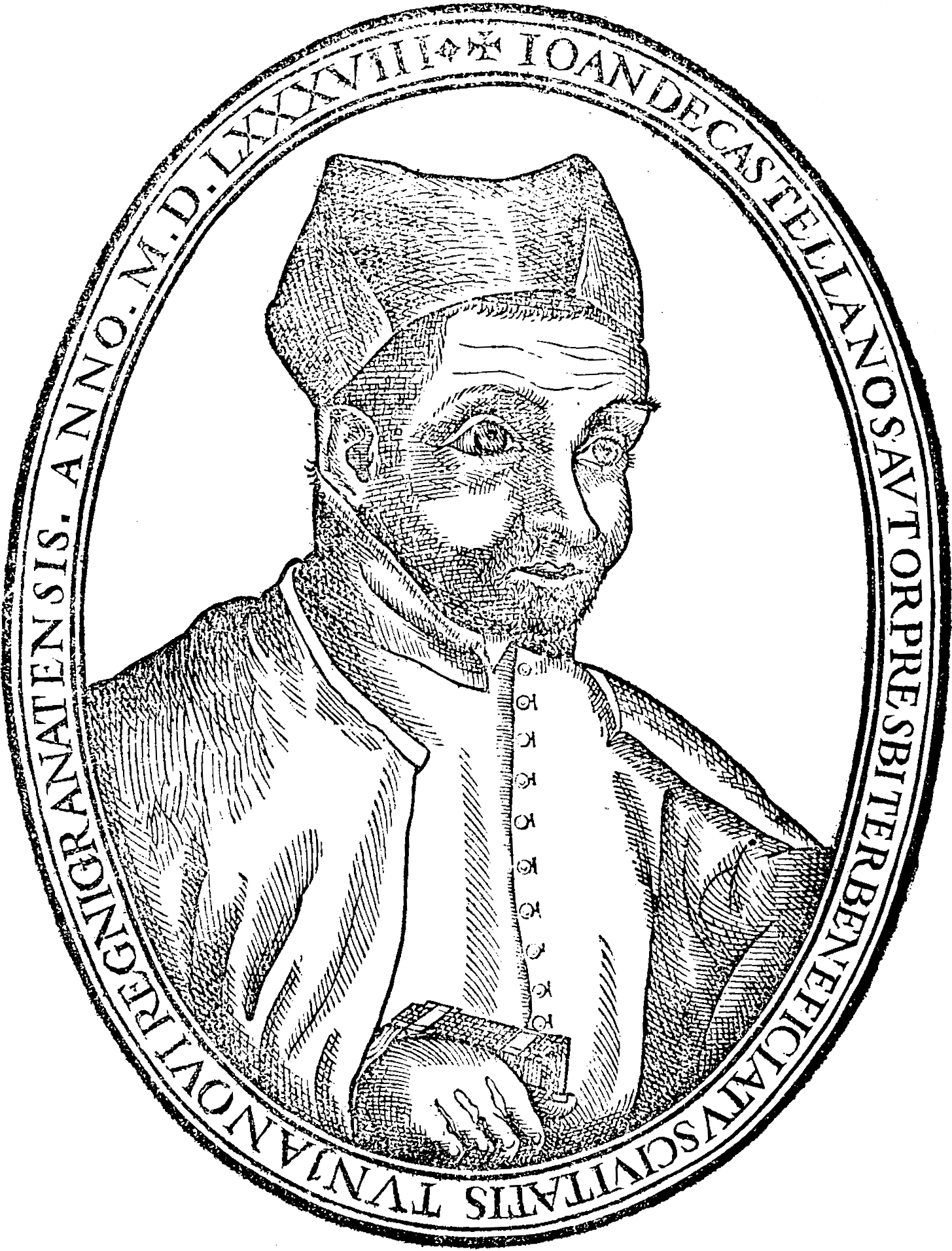 Retrato de Castellanos publicado en la primera edición de las Elegías. Fuente: tomado de la Biblioteca Digital Hispánica. Imagen propiedad de la Biblioteca Nacional de España.