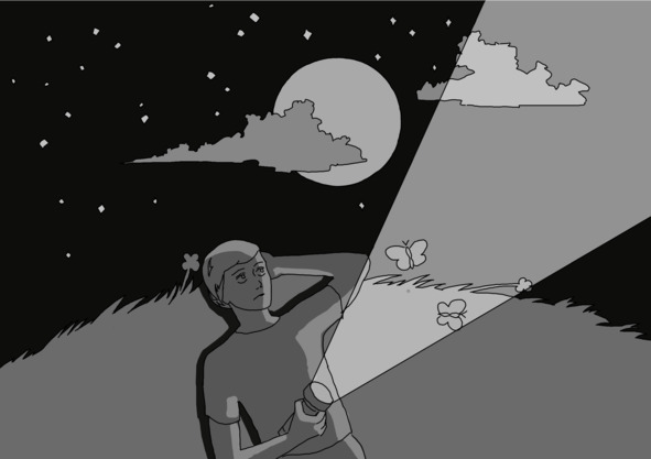 они замолчали и не могли налюбоваться всем, что их окружало. они сидели на возвышенности, поросшей травой, которая приятно шелестела при малейшем порыве ветра. цветы с наступлением ночи приобретали новые краски и почему-то не закрывались.