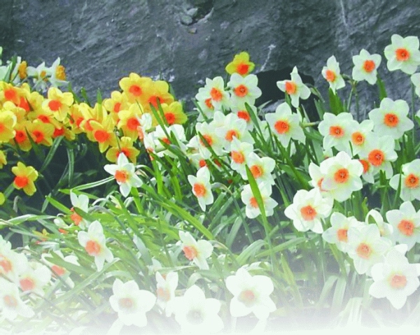 9. Поэтические нарциссы. Отличаются поздним и обильным цветением и крупными, очень ароматными цветками с белым околоцветником и плоской маленькой яркой короночкой. Самый распространенный сорт Actaea – с крупными, диаметром до 10 см, белыми цветками и оранжево-красной коронкой, Red Rim – белые цветки с крупной желтой коронкой и красной каймой по ее краю, Sarchedon – крупные белоснежные цветки с ярко-красной коронкой.