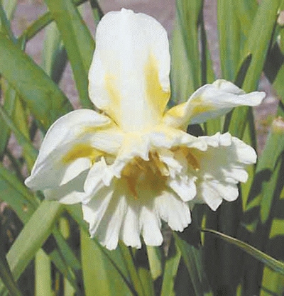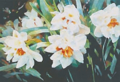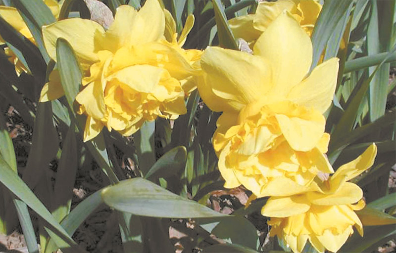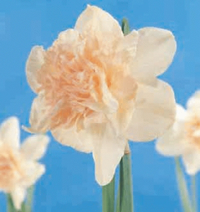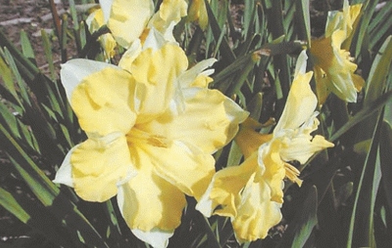 4. Махровые нарциссы. Цветки имеют околоцветник с множеством долей, а привенчик чаще всего редуцирован. Красивые, букетные, белые цветки у сорта Showball и Cheerfulness, желтые – у Yellow Cheerfulness; у сорта Texas – желтые с оранжевым центром; у Mary Coplend наружные лепестки бело-кремовые, внутренние – лимонно-желтые, перемежающиеся с оранжевыми; Twink имеет полумахровые бледно-желтые цветки, с оранжевым центром.