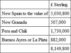 Making a total of 8,149,800l. sterling; to which may be added more than another million for the contraband trade.