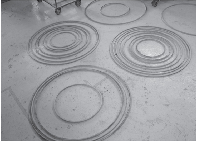 Successful rings were laid out on the floor like ripples; pear-shaped failures were taken outside and burnt.