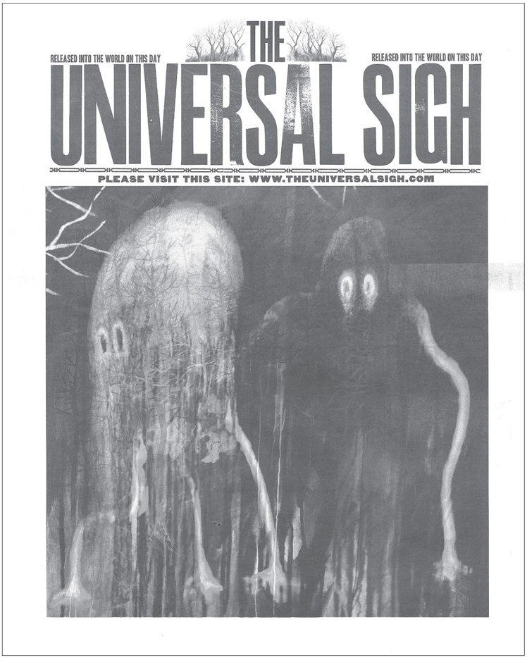 I am here to experience the physical, tactile event of being given a newspaper and leafing through it to see what I can see … I imagine Stanley will be still cycling around Devon or somewhere and the last I heard the band were in LA so it’s a bit odd to turn the corner and find him and Thom Yorke dressed up as barrow boys in flat caps and braces, proffering copies of The Universal Sigh* newspaper.