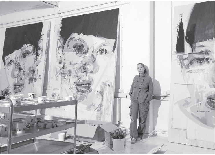 ‘Yes, or an abstract painting. Thinking of space and the ways things work in space. I’ve tried multiple ways of working – collapsible scaffolding, second floors, ladders … ladders in the end are the things that I like but I don’t have the same desire to make enormous paintings. I’ll make paintings the scale of that wall, but it’s an enormous emotional job to make a painting on that scale, getting it to work. I suppose my equivalent of that is having seven or eight heads on the go at the same time, which is what I’ve got going on with these Stares. I’ll probably come back round to large work again but, you know, I’ve got two babies now so …’