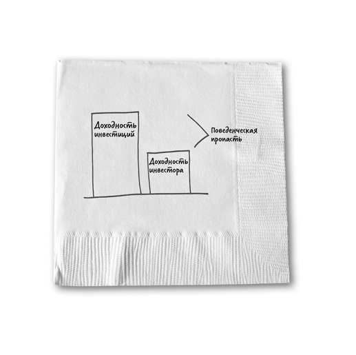 Чтобы обозначить разницу между доходностью инвестиций и доходностью инвестора, я придумал термин «поведенческая пропасть» и везде, где только появлялась возможность, начал делать наброски, представленные вниманию читателей на страницах этой книги. С тех пор я использую словосочетание «поведенческая пропасть» для описания всех ситуаций, в которых наше поведение приводит к неудовлетворительным результатам. Множество рисунков были сделаны мною для того, чтобы помочь клиентам и читателям понять, чем на самом деле мотивированы их действия. А началось все с простой зарисовки: