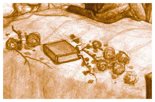 Когда Лаванда переодевалась перед сном, из её кармана что-то выпало. Наклонившись, она обнаружила бутон розы. Он был прекрасен, хотя ещё и не успел раскрыться. Рассматривая его, Лаванда случайно укололась о шип.