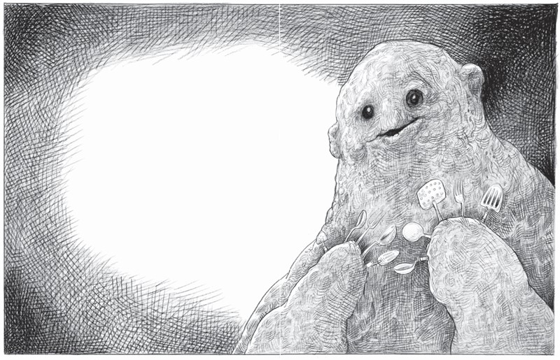 Пряничище захлопал в ладоши, а ложечки, вилочки и лопаточки, которые теперь служили ему пальцами, легонько позвякивали…