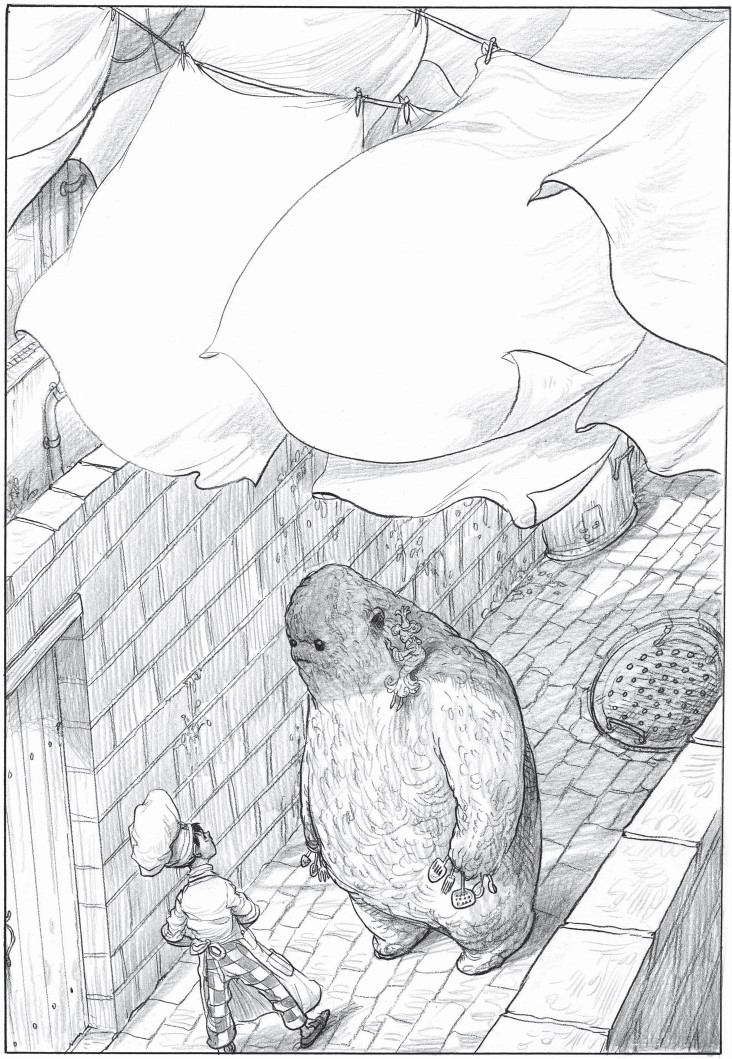 Лангдэйл, насупившись, отошёл к каменной раковине. Остальные направились в лавку. Подмастерья выстроились перед прилавком, а Бальтазар тщательно осматривал их курточки и колпачки: нет ли пятен от варенья или, чего доброго, жирных следов от крема.