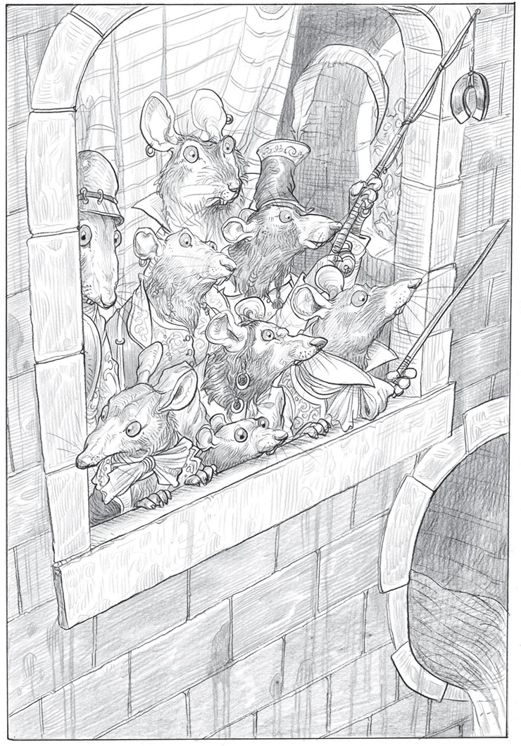 Зам подкрался к концу туннеля и выглянул наружу. Глазам его предстало просторное помещение. Очевидно, сюда вело множество подземных туннелей – в стенах виднелись круглые выходы. Над выходами висели каменные балконы, где теснились крысы, разодетые в пух и прах.
