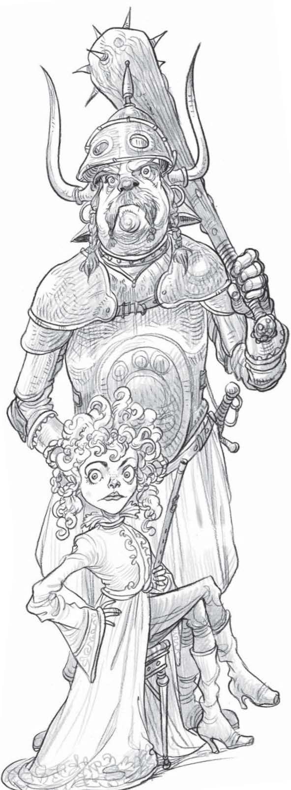 Рядом с котами располагалась странная группа людей в одеждах всех оттенков зелёного: от цвета листьев молодой липы до красок кроны векового дуба. «Эти, наверное, из Великого Леса», – подумал Зам. Зелёные носили рогатые шлемы, украшенные перьями и даже помпонами, и были вооружены дубинками и тяжёлыми мечами. В центре группы находился, видимо, их предводитель, который, к изумлению Зама, оказался молодой женщиной с копной золотых кудрей.