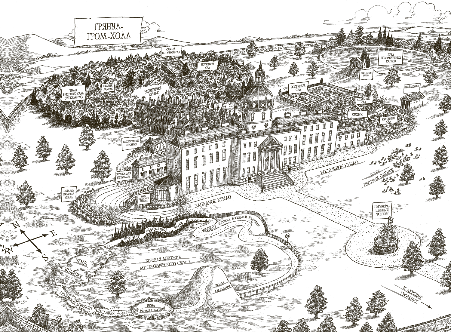 Все, кроме неё, направились в сторону восточного крыла Грянул-Гром-Холла, где располагалась малая буфетная. Ада же подошла к западному крылу, чтобы войти внутрь через Византийское окно Венецианской террасы. Переступая его, она услышала громкий хлопок. Быстро оглянувшись, Ада увидела своего отца верхом на его беговеле, Пегасе, посреди Западной лужайки. В одной руке он сжимал пачку бумаги, в другой – дымящееся ружье. В зубах у лорда Гота было зажато перо. Один из садовых гномов на гномальпийской скале стоял без головы. Под Адиным взглядом лорд Гот взял перо из зубов в руку, обмакнул его в чернильницу, притороченную к рулю беговела, и принялся яростно водить им по бумаге. Ада отвернулась и проворно двинулась через холл в сторону парадной лестницы. Она понимала, что стрельба по гномам помогает её отцу сосредоточиться, но была очень рада, что его сейчас никто больше не видел. Лорд Гот считался опаснейшим для садовых гномов сумасбродом, и подобное поведение только ухудшало его репутацию.