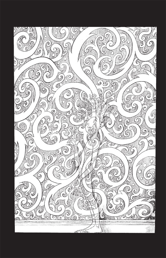 Ада обратила внимание, что на Эмили по-прежнему ее широкие мягкие тапочки для улицы. По стене пробежала рябь, и от нее отделился Уильям. «Оденься, Уильям!» – приказала ему сестра. Еще одно колыхание обоев, Уильям исчез в тени и через мгновение появился снова – на сей раз в развевающейся ночной рубахе.