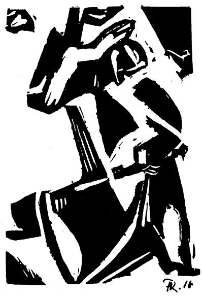 В Цюрихе, где Арп в 1916 г. примкнул к Баллю, бумажные вырезки вскоре превратились в резьбу по дереву. Его первые рельефы были ярко раскрашенными причудами, изгибами в дереве равномерной толщины (см. илл. 8). У меня самого был такой, пока Арп его у меня «не выменял на что‑нибудь другое, … что потом тоже “потерялось”».