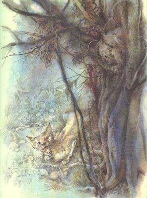 О своих опасениях она поведала другим коалам, и Лежебока взялся следить сам, пока не заснул. На следующий день зверь опять сидел под кустом медуницы и, облизываясь, поглядывал вверх, надеясь, что кто-нибудь из коал спустится. Да, это была лиса.