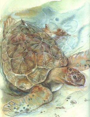 Первые мгновения, первые часы своей жизни маленькая Сарли, морская черепаха, провела в песке на глубине около трёх футов чуть выше линии самого высокого прилива, где песок всегда оставался влажным. Из-под верхнего щита Сарли выглядывали маленькие крепкие ласты длиною около двух дюймов и выпуклая головка. Сарли была тут не одна. Компанию ей составляли ещё по крайней мере двадцать пять братцев и сестёр.