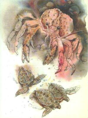 Но не все добрались до воды. Когда Сарли казалось, что путешествие по пескам уже подошло к концу, из влажной тьмы к ней вдруг протянулась чья-то клешня. То был большой краб, и как раз такое угощение он здесь и высматривал. Сарли мгновенно подалась в сторону, и краб одной громадной клешнёй ухватил её нерасторопного братца, а другой стал сдирать с него панцирь, торопясь добраться до нежного мяса.
