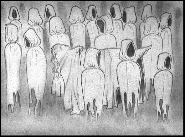 Тёмные люди – не в противостоянии Светлым, и не по цвету, но не выходящие из тени собственного ханжества, налагают печать скудоумия на остальных, которые принимая её, как пилюлю остракизма, приобретают землистый цвет лица. Цвет земли, лишенной света и всходов здравого смысла. По принципу испорченного телефона ложная информация распространяется, как истина. Это приобретает масштабы локальной эпидемии. Но, чем большее число сомневающихся, оправдывая своё молчание страхом, тем самым, соглашаются с исключительной оценкой лжи, взятой за образец, тем меньше становится людей искренних и не предвзятых. Локальная эпидемия перерастает в глобальное заблуждение.