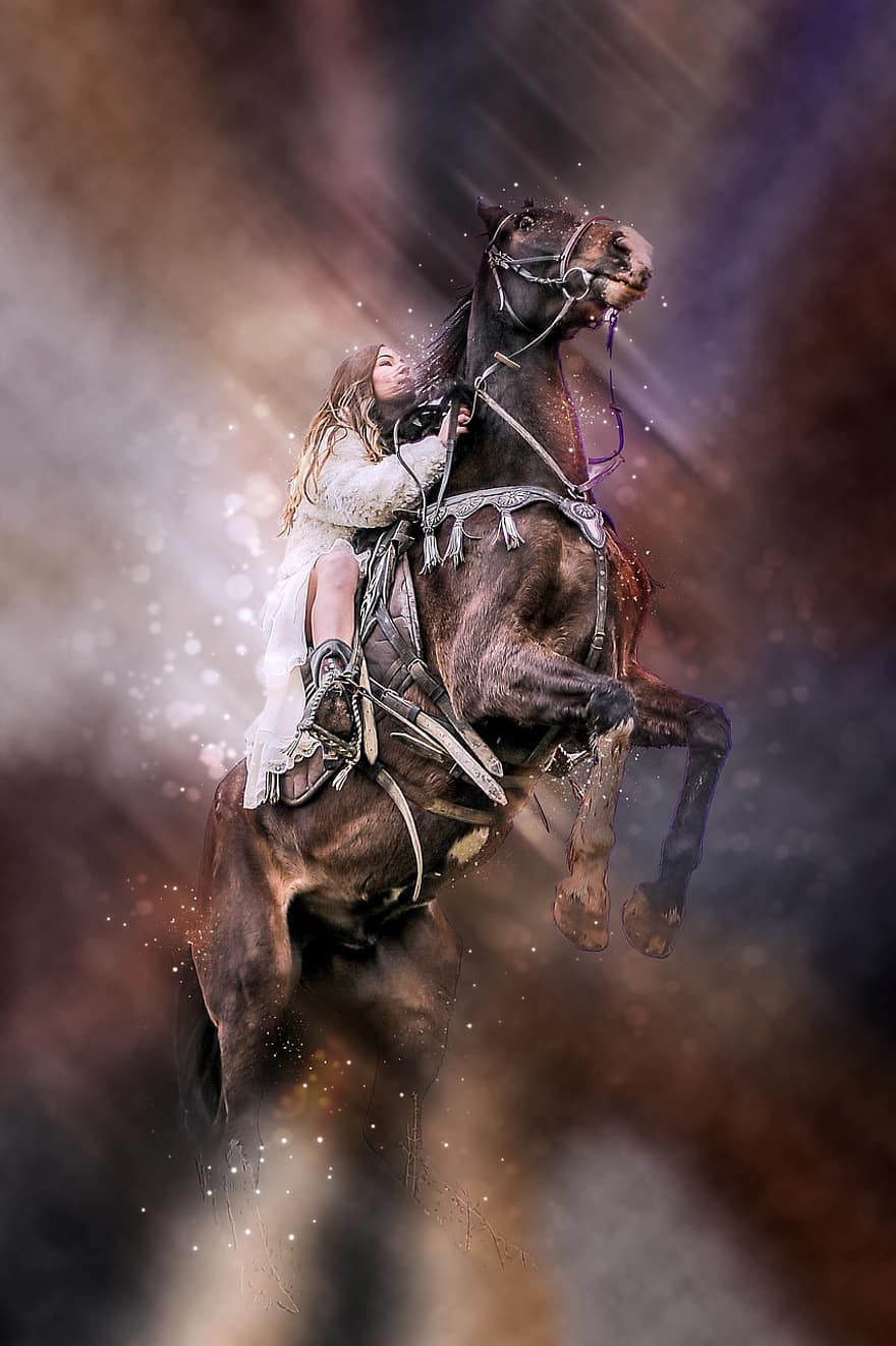 Девушка ужасно разозлилась, поэтому, чтобы не продолжать разговор, она первая дернула поводья и помчалась вперед. Принц последовал за ней.