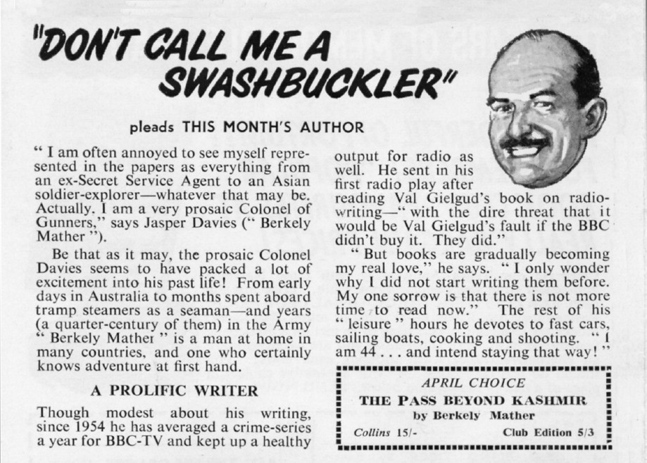 Given the popularity of war stories, it was to be expected that anyone with actual wartime experience and a modest grasp of basic English would fancy their chances supplying stories to a growing and seemingly insatiable market. Notable military ‘veterans’ included Berkely Mather – a career soldier for twenty years before taking to writing radio and television plays and then thrillers, Francis Clifford – a genuine war hero, Clive Egleton – a long-serving professional soldier, Eric Ambler, Victor Canning and Hammond Innes, who all saw wartime service in the Royal Artillery. Also, John Gardner and James Leasor, who both served with the Royal Marines, John Michael Brett and Adam Hall were in the RAF, and Lionel Davidson and Antony Melville-Ross served in submarines throughout WWII.