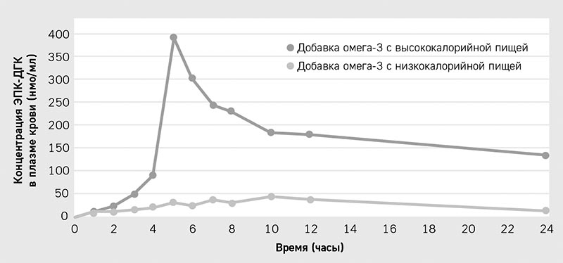 РИС. 7: БИОДОСТУПНОСТЬ ДОБАВОК ОМЕГА-3 С РАЗЛИЧНЫМ СОДЕРЖАНИЕМ ЖИРА