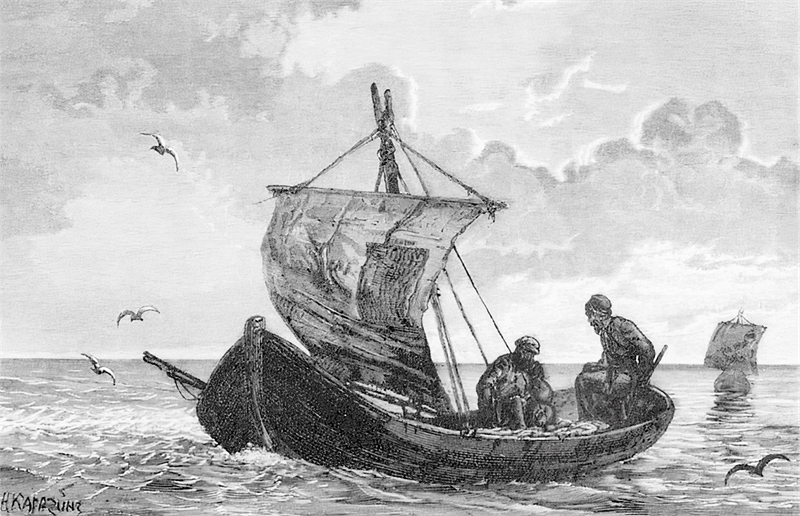 Неизв. автор. Промысловый бот «карбас». Гравюра. XIX век