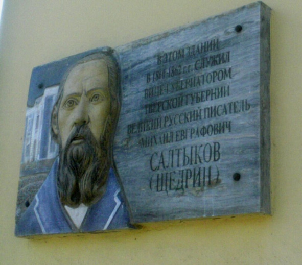Самое прикольное, что украшает фасад этого старинного здания барельеф с портретом ненавистника тверских чиновников, великого русского писателя-сатирика Салтыкова-Щедрина, уроженца Калязинского района, который был тут вице-губернатором и клеймил вороватых глуповцев, посему и заседал Михаил Евграфович в Твери недолго, всего лишь год. Есть в Твери и памятник Салтыкову-Щедрину, но о памятниках чуть позже расскажу. И не надо мне пристегивать, что я тут про политику. Нету тут политики. Это чистой воды моя лирическая сага о Твери. Как говорится, что вижу, то пою.