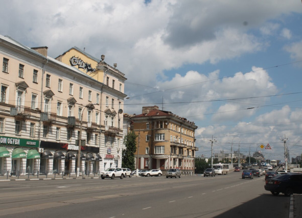 Раньше по Советской ходил трамвай. Площадь с названием Тверская находится в самом центре города, там виден купол тверского цирка и фонтан в сквере. Вот мы туда и пойдем, нам только Старый мост перейти и снова пройти мимо Путевого дворца и мимо медицинской академии.