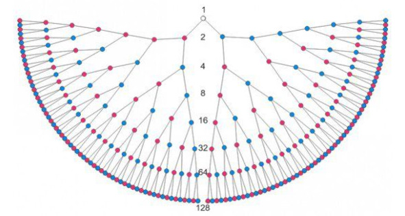 На этой схеме 254 человека, которые передали нам свои гены. Это – бинарный код: количество наших предков аналогично двоичному способу хранения информации (2, 4, 8, 16, 32, 64, 128 Гбайт). Мы носители каждого из этих кодов.