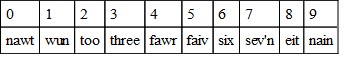 by which it will be seen that the ten names contain eight but only eight different vowels, 0 and 4 having the same vowel aw, while 5 and 9 have ai. Both these pairs caused confusion; the first of them was cured by substituting the name of the letter O for the name of the zero cipher, which happens to be identical with it in form,9 and this introduced a ninth vowel sound ou (= owe), but the other pair remained such a constant source of error, that persons who had their house put on the general telephonic system would request the Post Office to give them a number that did not contain a 9 or a 5; and it is pretty certain that had not the system of automatic dialling, which was invented for quite another purpose, got rid of the trouble, one of these two ciphers would have changed its name at the Post Office.