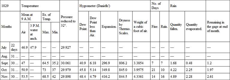 The month of November was generally fine, but the first half of December continued tempestuous and wet. The mean temperature of the months, and other meteorological remarks, are as follows: