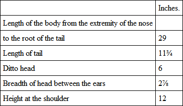 A variety of this species was given to me, by the Patagonian Indians, that had been recently killed; the skin was preserved, and is now in the museum of the Zoological Society. The following is the description of my specimen: —