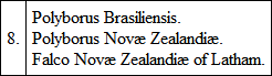 BIRDS1. Sarcoramphus Gryphus. – Duméril. The Condor. Vultur Gryphus.– Lin2. Cathartes Iota. – Chilian Eagle3. Polyborus vulgaris. —Falco Brasiliensis. Latham. Caraçara EagleStrait of Magalhaens4. Milvago ochrocephala. – Spix. Young birdsStrait of Magalhaens.
