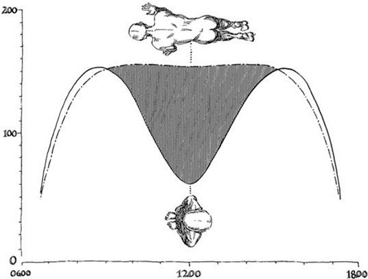 К неожиданным выводам об истоках человеческой психики можно прийти, если рассмотреть расположение мозга в голове с инженерно-строительной точки зрения. Благодаря прямохождению солнце нагревает меньшую поверхность тела. В полдень тело двуногого животного поглощает на 60 % меньше тепла, чем тело четвероногого. А в густой субтропической растительности высотой не меньше полуметра двуногие избавляются от лишнего тепла на треть быстрее, чем четвероногие. Скачок в увеличении размеров мозга был во многом связан с насущной потребностью выпрямиться в полный рост и получить возможность охлаждения.