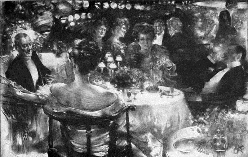 "It's only Percy Draymore's kid brother," she explained, passing her arm through his with a little sigh of satisfaction. "Where have you been all the while?—and with whom have you danced, please?—and who is the pretty girl you paid court to during that last dance? What? Didn't pay court to her? Do you expect me to believe that? . . . Oh, here comes Nina and Austin. . . . How pretty the tables look, all lighted up among the trees! And such an uproar!"—as they came into the jolly tumult and passed in among a labyrinth of tables, greeted laughingly from every side.