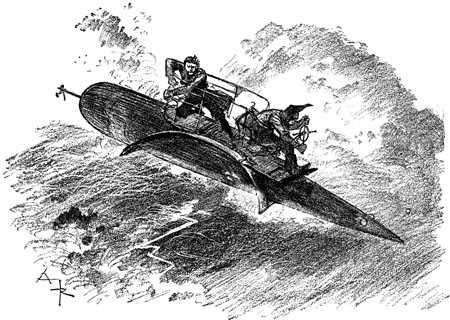 Беда была так сказать уже на носу, когда ее наконец усмотрели. Тогда вся масса воздушных экипажей ринулась в самом фантастическом беспорядке вниз, чтоб как нибудь укрыться от настигавшего ее урагана. Более чем тысячная толпа разнообразнейших летательных снарядов перепуталась в хаотическую груду, причем дело не обошлось без столкновений, сопровождавшихся во многих случаях серьезными авариями. Торнадо, налетевшее с быстротою молнии, унесло с неудержимою силой все, что не успело своевременно спастись бегством. Злополучные воздушные корабли, захваченные ураганом, были несколько секунд спустя брошены в изуродованном виде наземь в двухстах верстах от Тура. Счастье еще, что большие воздушные суда, на которых находились члены воздухоплавательного клуба со своими семьями, были снабжены новоизобретенным прибором, соединявшим электрометр и резервуар изолирующего газа с автоматически действующим клапаном. Как только отклонение стрелки электрометра перешло за известный предел и указало существование в атмосфере опасного напряжения, клапан открылся сам собою, и воздушные суда, окружённые надежным изолирующим облаком, были в состоянии благополучно достигнуть пристани клуба, выдержав, впрочем, на пути сильнейшую качку.