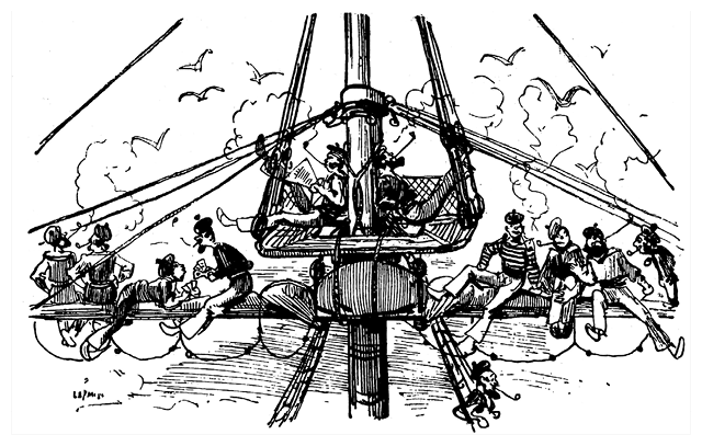 Фарандуль и его матросы ожидают какой-нибудь неожиданной развязки, какого-нибудь отчаянного акта героизма – вроде подвига гренадеров-биманов в битве при Ватерлоо.