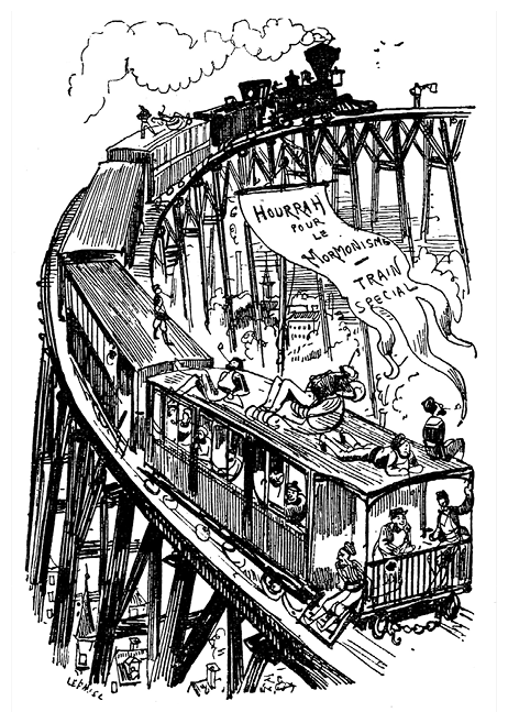 Шестидневное путешествие по железной дороге не охладило пыла неофитов. С первой же станции Фарандуль отослал телеграмму Бригаму Янгу, духовному лидеру мормонов, дабы предупредить того об их скором прибытии. Бригам ответил, и на протяжении всей поездки между великим священником и новым обращенным велась живая, пусть и заочная, беседа.