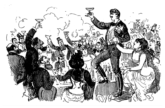 Мы хотим привести здесь лишь начало той речи, которую произнес наш герой посреди шума приветствий и аплодисментов и которая закончилась столь громогласным «ура!», что на улице погасло несколько газовых фонарей. Фарандуль начал так: