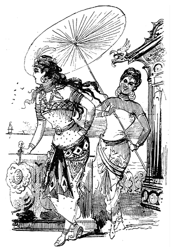 Если мы желаем познакомиться с ее дочерью Мизорой, нам всего-то и нужно, что спуститься по тенистым тропинкам, которые ведут от дворца Ра-Тафии к берегу моря; постараемся, однако же, не попадаться на глаза свирепым малайцам, которые с пикой в руке следят за всеми тропами. Эти часовые охраняют от нескромных взоров ту часть берега, где Мизора и ее фрейлины принимают свои ежедневные ванны.